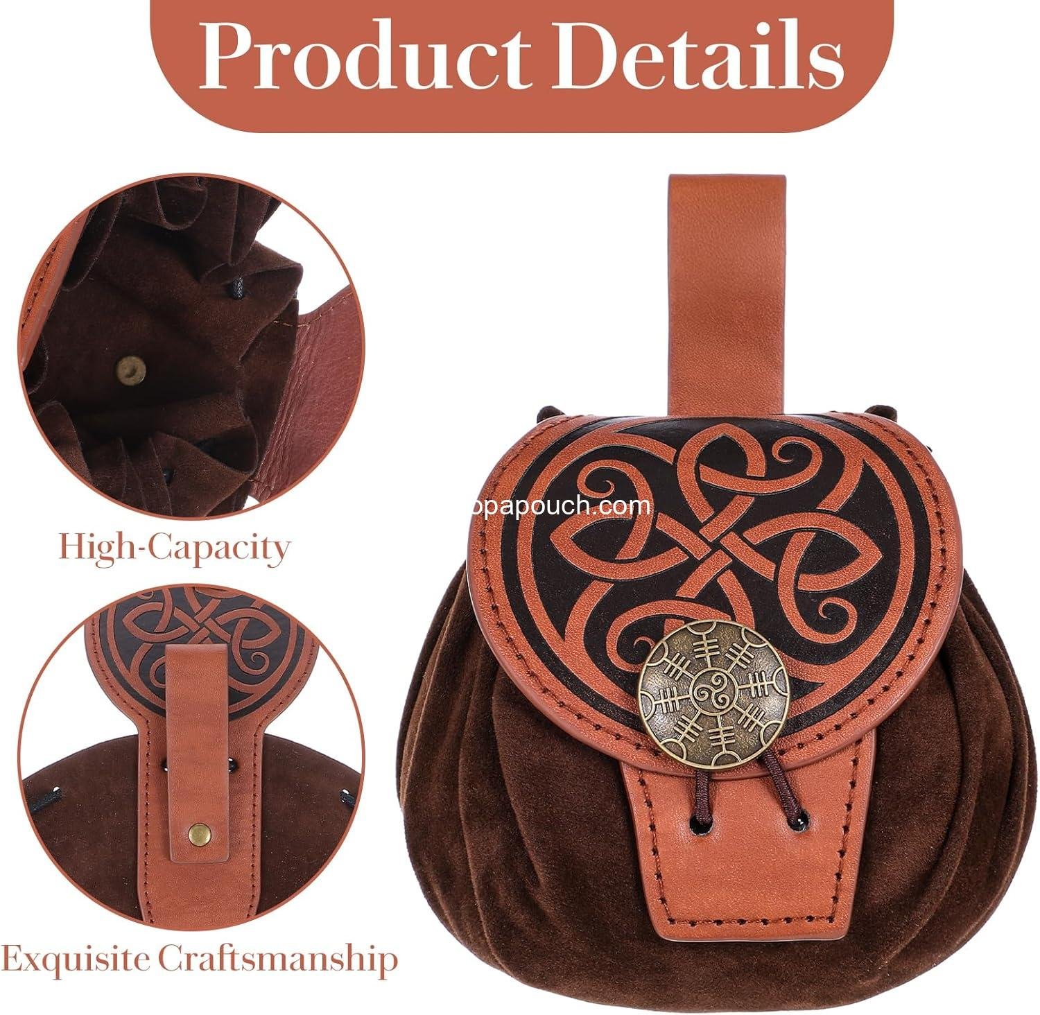 Crafted with high-quality, sturdy PU leather and featuring a robust drawstring closure, this bag is made to withstand the rigors of daily use. Rest assured that your treasures will remain secure throughout your journeys, whether traversing kingdoms or visiting local markets.