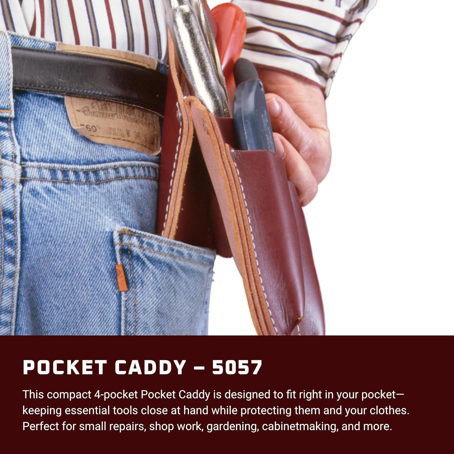 Designed for diverse professional environments, this Pocket Caddy excels in small repairs, shop work, gardening, cabinetmaking, and farm maintenance. Its compact form factor supports hands-free mobility, making it a must-have for tradesmen who prioritize productivity and minimalism in their workflows.