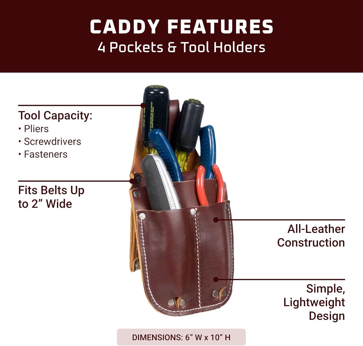 | Ideal Tool Capacity | Pliers, screwdrivers, fasteners |
