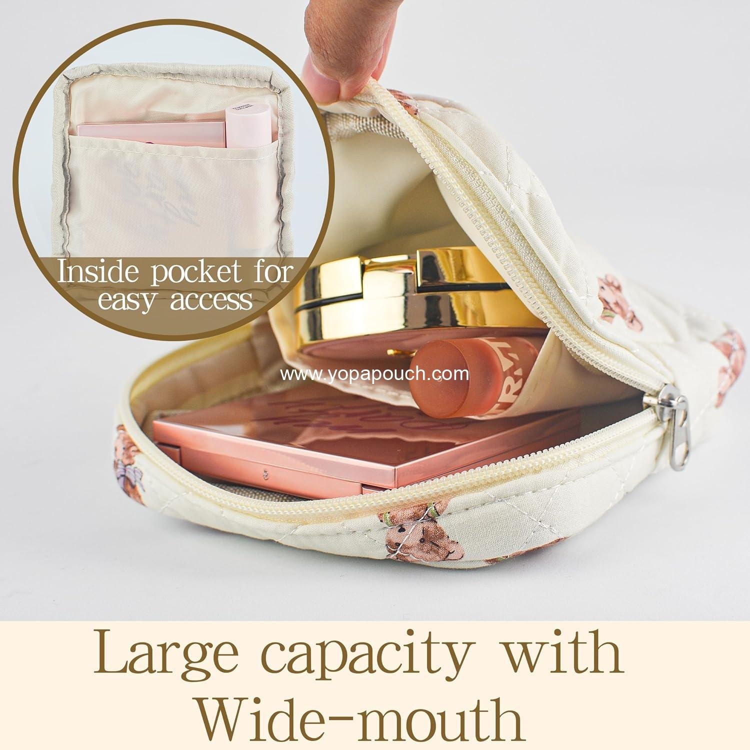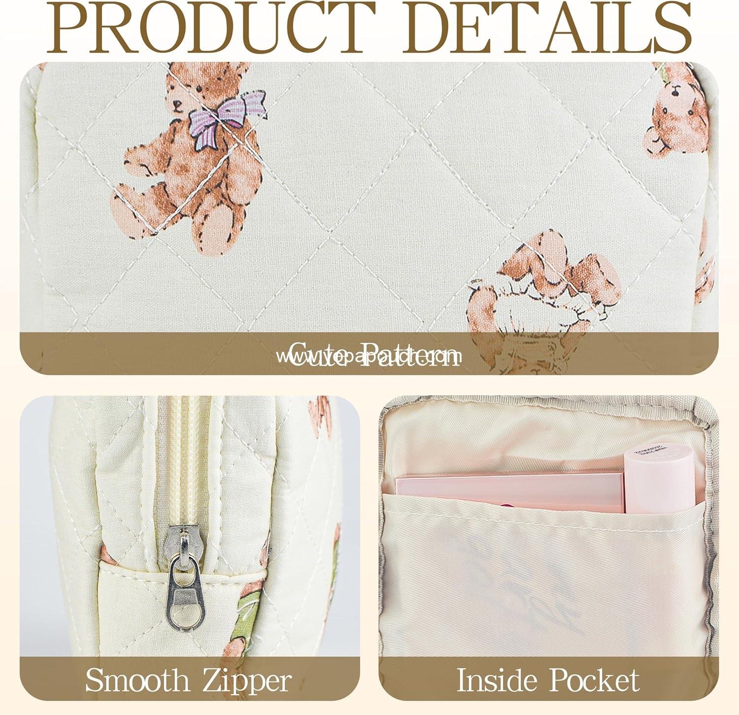 Crafted from premium diamond-quilted cotton fabric with reinforced stitching, these makeup bags offer both a plush texture and lasting resilience. The rust-proof zipper ensures smooth operation every time, combining style with practicality.